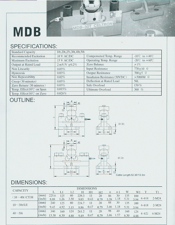 產品名稱:美國Celtron稱重傳感器,稱重傳感器MDB-30t,傳感器MDB-30t,MDB-30t,咨詢熱線:0755-26734156