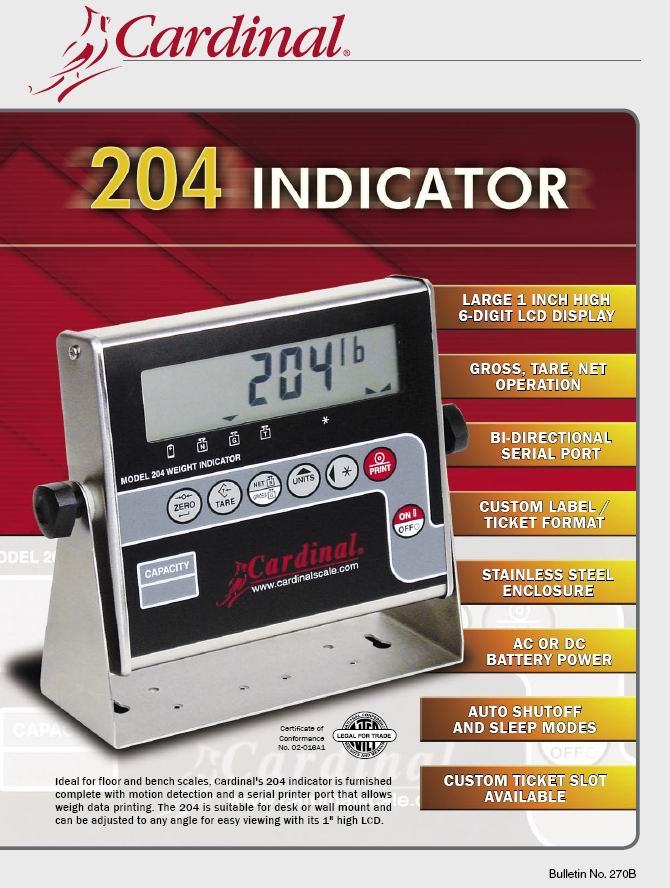 Cardinal 204 稱重顯示儀表(indicator) 規(guī)格: