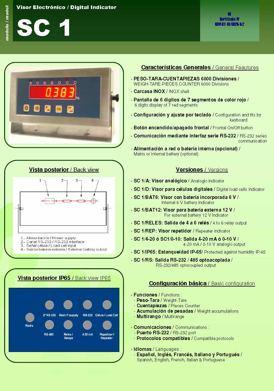 產(chǎn)品名稱:Sensocar SC-1 稱重顯示儀表(indicator) |