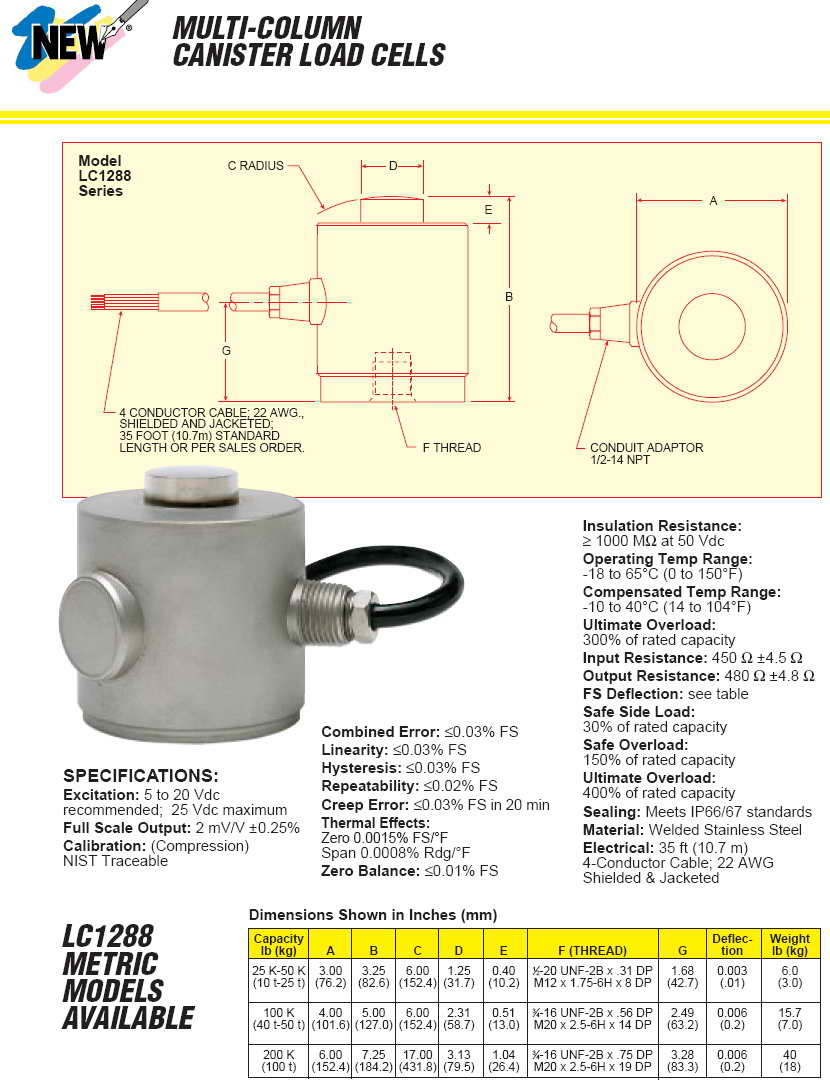Omega LC1288 柱式傳感器(load cells)