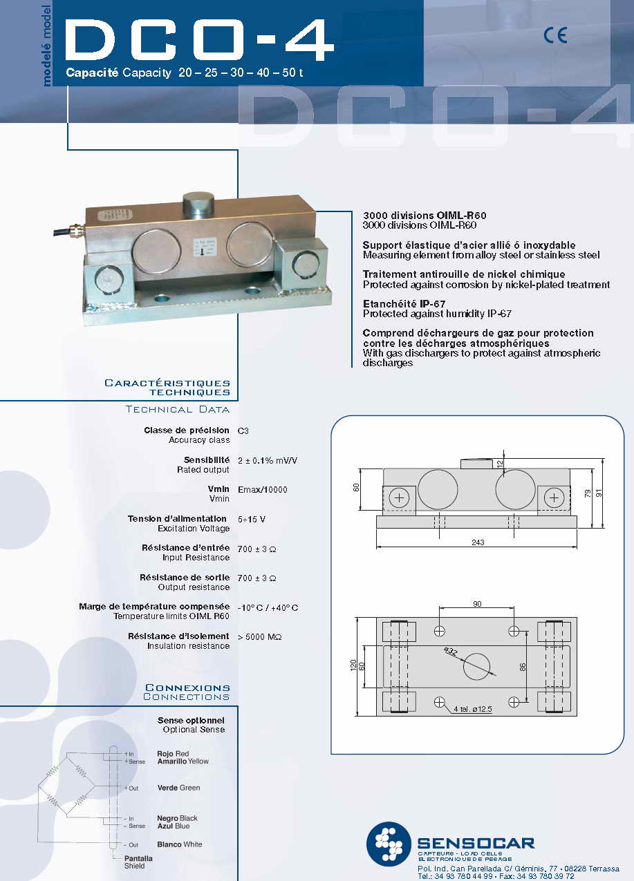 Sensocar DCO-4 壓式稱重傳感器(load cells)