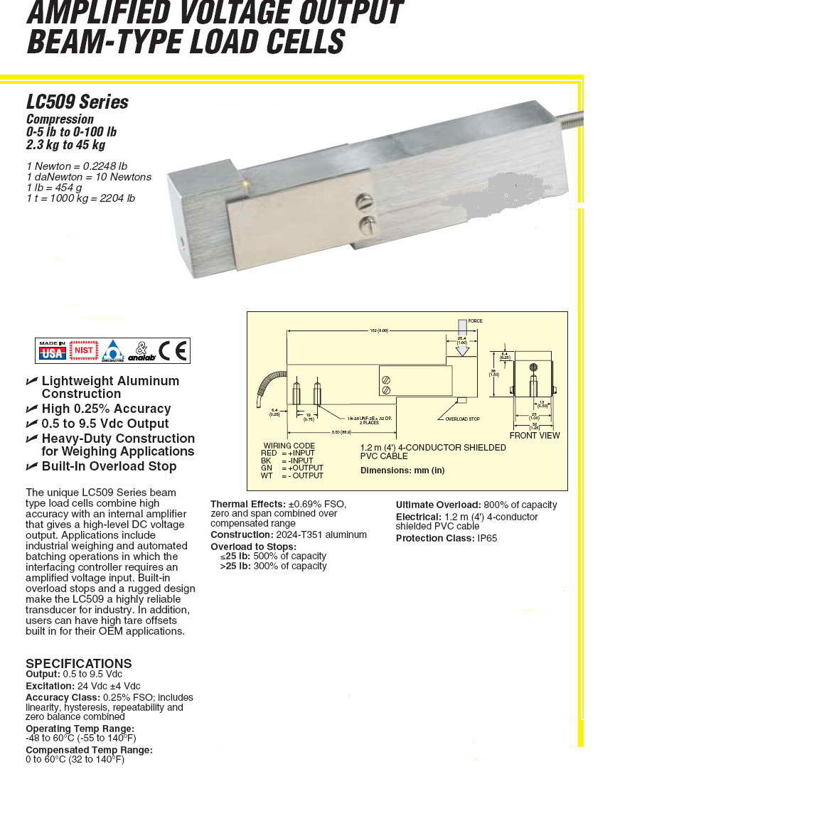 產(chǎn)品名稱:Omega LC509 懸臂梁傳感器(load cells) |
