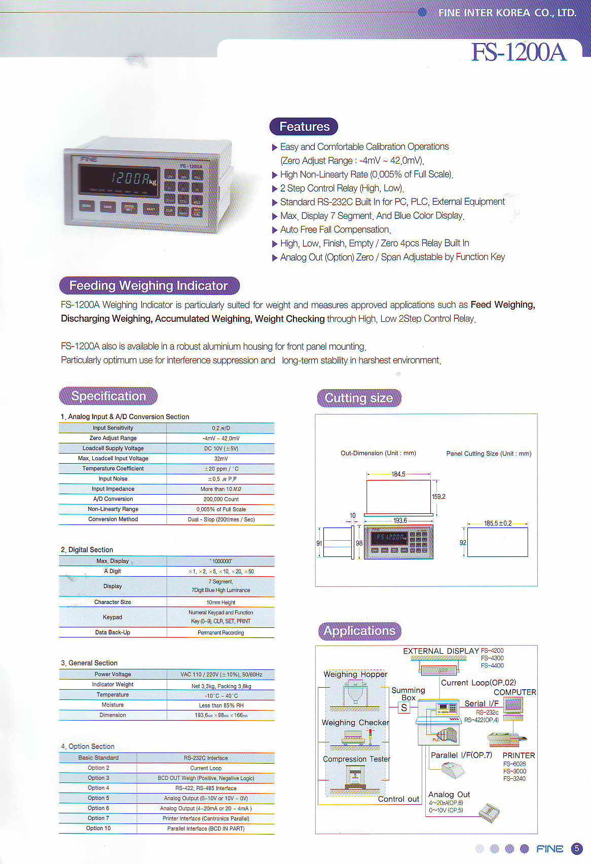 韓國Fine稱重顯示儀表,稱重顯示儀表FS-1200,顯示儀表FS-1200,F(xiàn)S-1200                          咨詢熱線:TEL:0755-86111857  FAX:0755-26738841 Q:2209800901 伍工