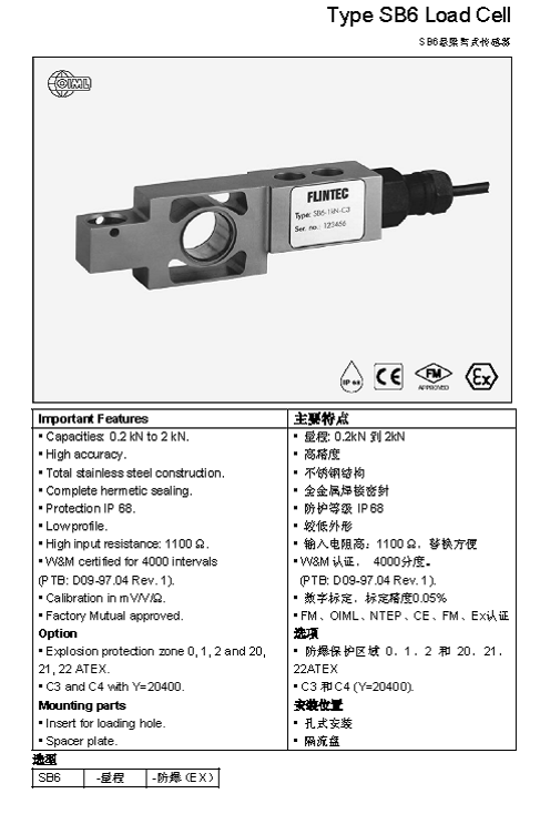 FLINTEC SB6 懸臂梁式稱(chēng)重傳感器(load cells)