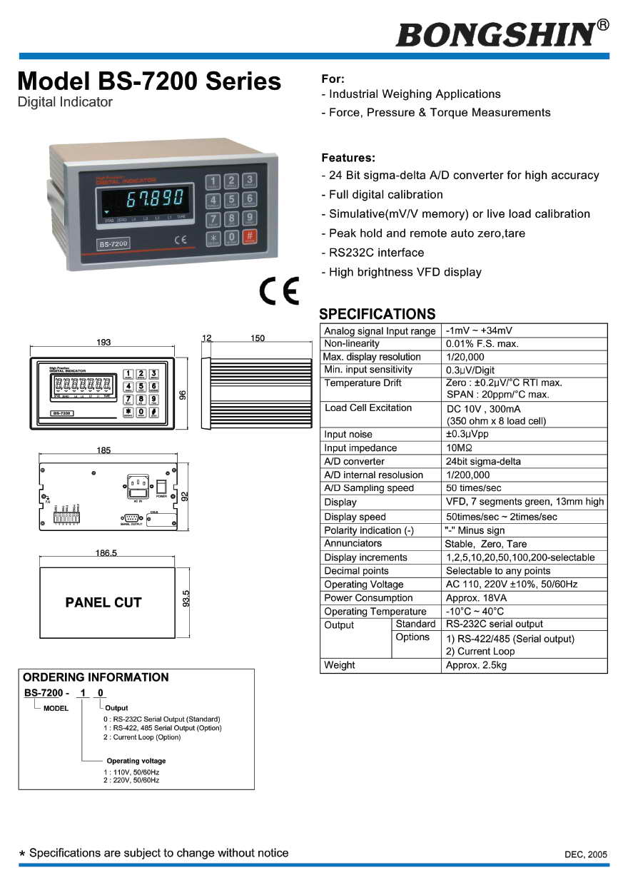產(chǎn)品名稱:BS-7200 顯示儀表(digital indicator) |