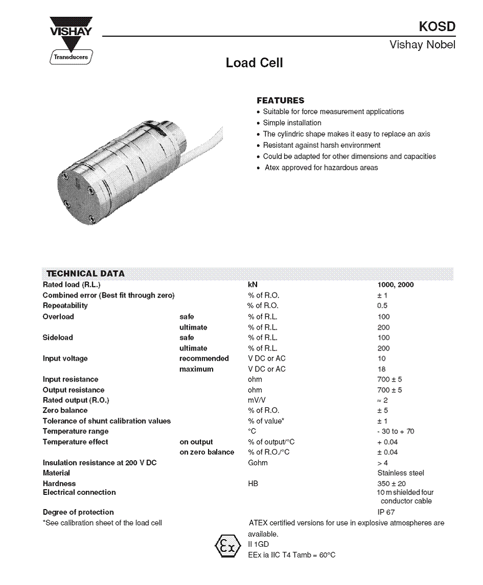 描述:KOSD - 40稱重傳感器具有堅(jiān)固的外殼,適合在惡劣環(huán)境中測力過載保護(hù)應(yīng)用。敏感元件包括三個(gè)部分,兩外部分構(gòu)成支持,中間部分是負(fù)載傳感的一部分。KOSD - 40稱重傳感器可成為負(fù)載和一級(jí)監(jiān)測模塊儲(chǔ)存,所以也可稱為KOM-1。