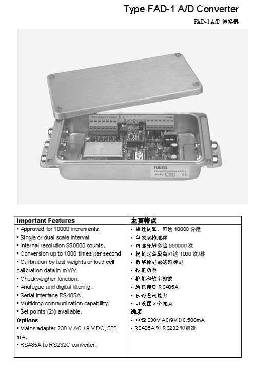 產(chǎn)品名稱:FLINTEC FAD-1 A-D轉(zhuǎn)換器(A/D Converter) |