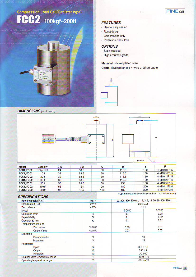 Fine FCC2 柱式稱(chēng)重傳感器(load cells)