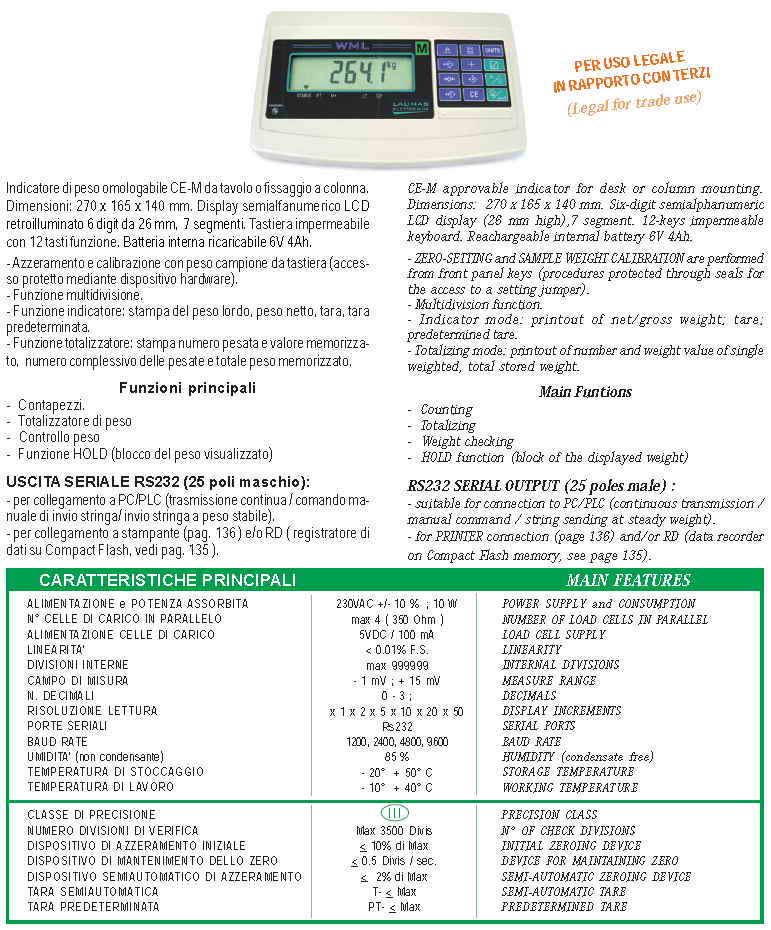 | 產(chǎn)品名稱:Laumas WML 稱重顯示儀表(weight indicator) |