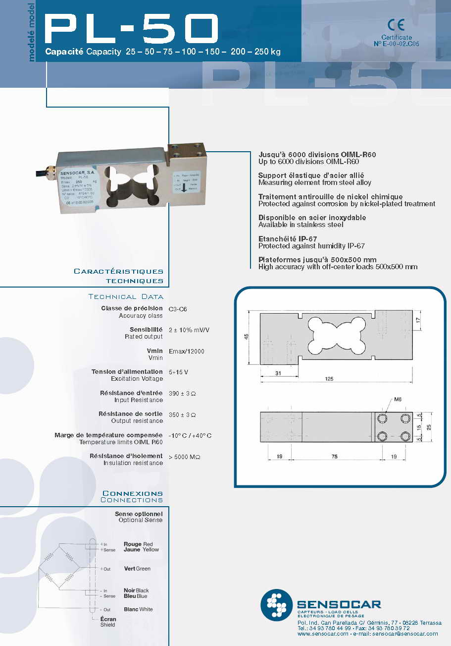 | 產(chǎn)品名稱:Sensocar PL50 單點式稱重傳感器(load cells) |