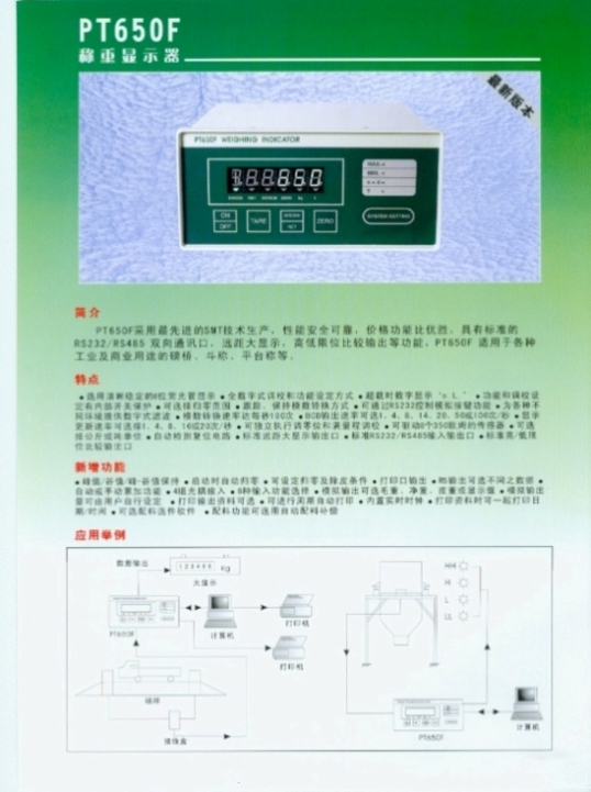 | 產(chǎn)品名稱:PT650F 稱重顯示控制器(indicator) |