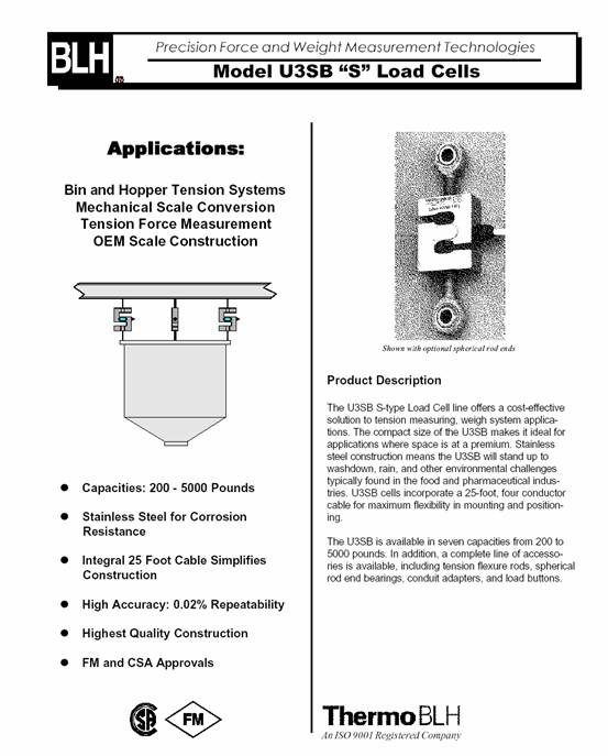 產(chǎn)品名稱:U3SB S型稱重傳感器(load cells) |