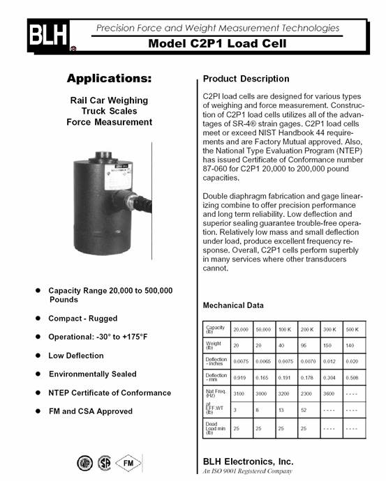 產(chǎn)品名稱:C2P1 稱重傳感器(load cells) |