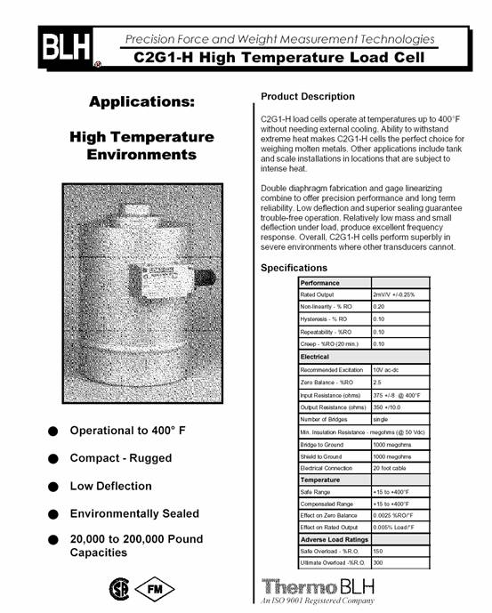 產(chǎn)品名稱:C2G1 高溫稱重傳感器(load cells) |
