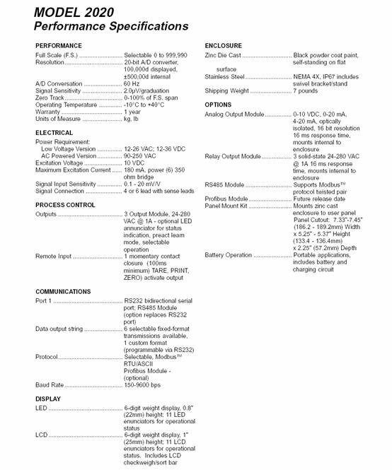 產(chǎn)品名稱:STS 2020 稱重顯示儀表(weight indicator) |