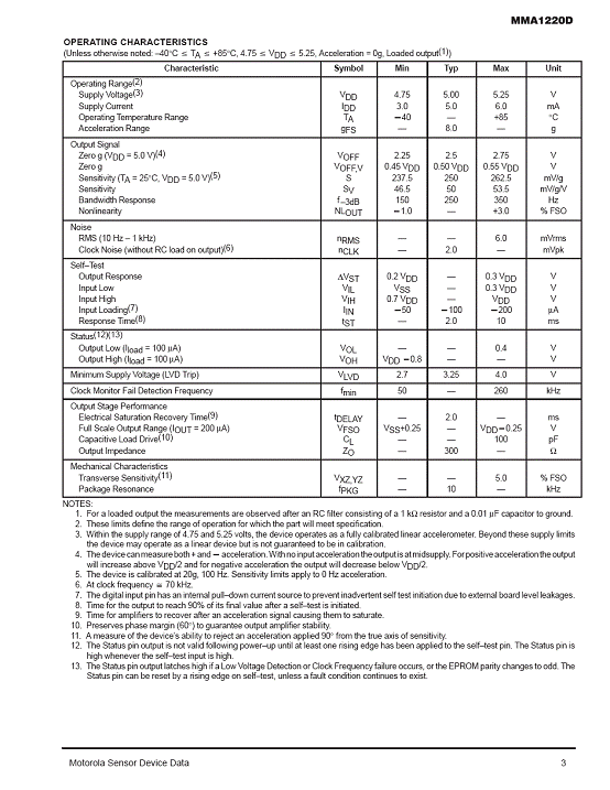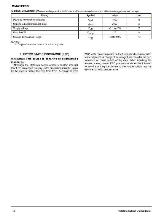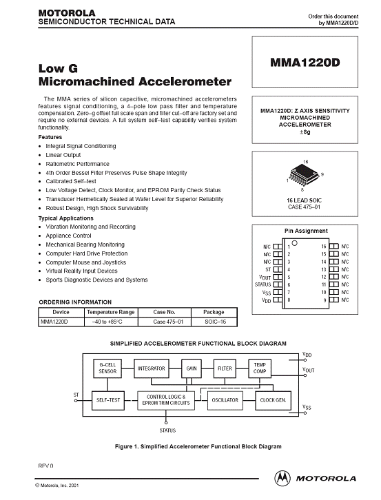 MMA1220D 加速度傳感器(accelerometer)