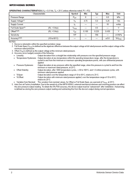 MPXV4006G 氣壓傳感器(sensor)