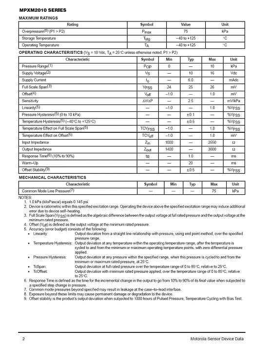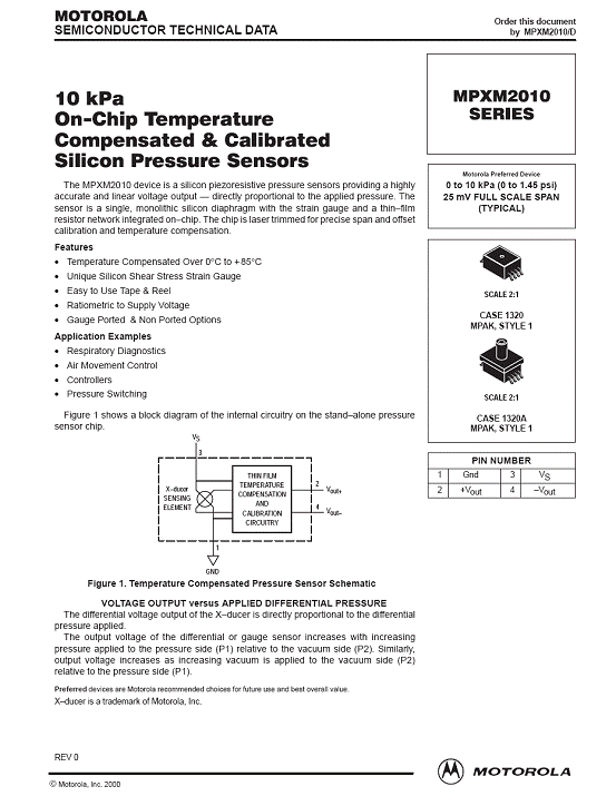 產(chǎn)品名稱:MPXM2010 氣壓傳感器(sensor) |