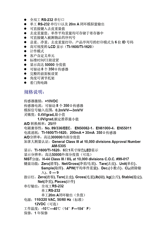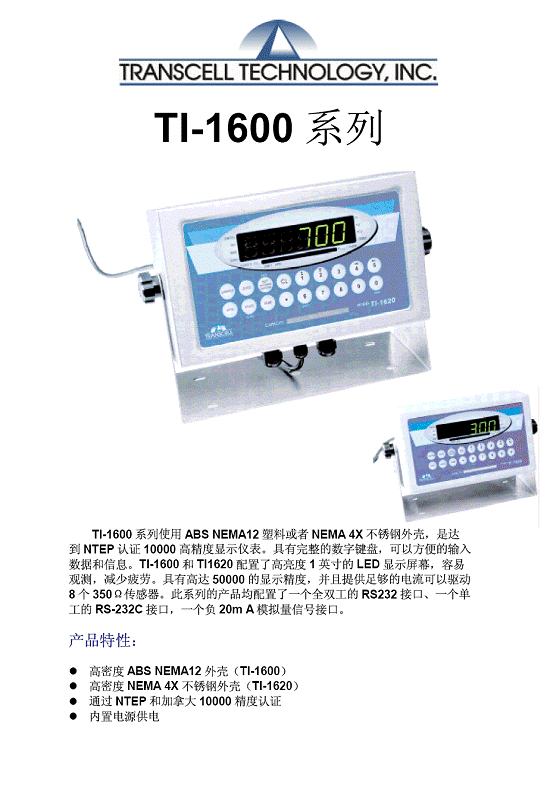 產(chǎn)品名稱:Transcell TI-1600 高精度顯示儀表(Indicator) |