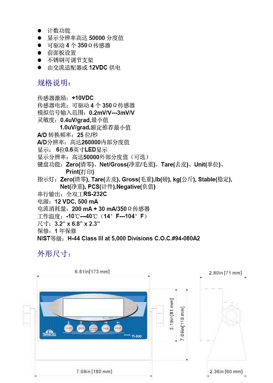 Transcell T1-500E 稱重顯示儀表(Indicator)