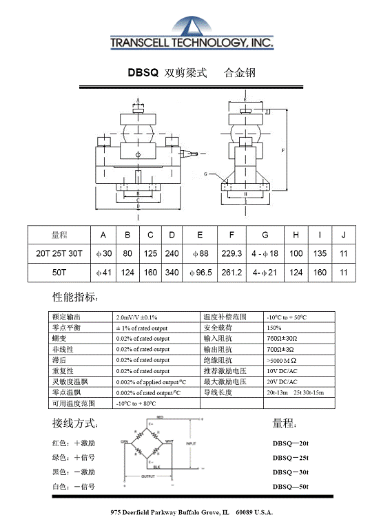 產(chǎn)品名稱:Transcell DBSQ 橋式稱重傳感器(load cells) |
