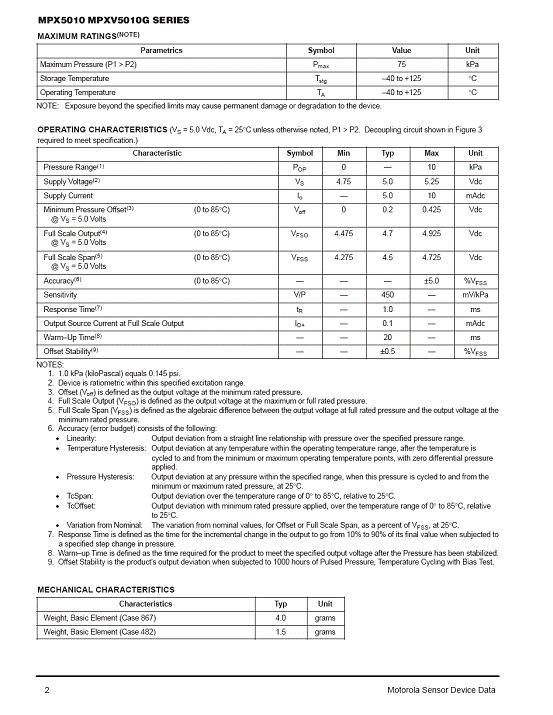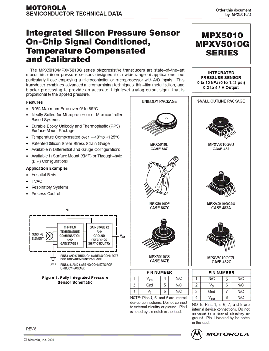產(chǎn)品名稱:MPX5010 氣壓傳感器(sensor) |