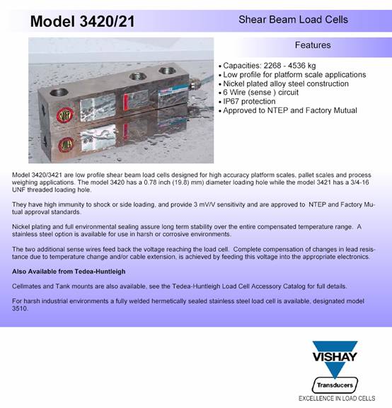 產(chǎn)品名稱:Tedea 3420 稱重傳感器(load cells) |