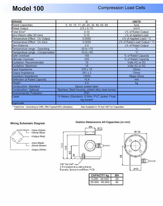 產(chǎn)品名稱:Tedea 100 稱重傳感器(load cells) |