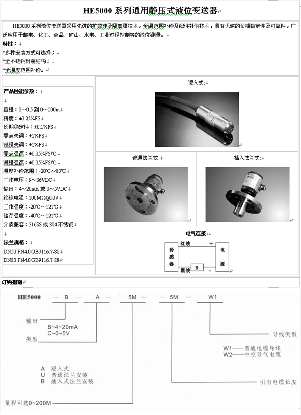 產(chǎn)品名稱:HE5000系列 液位變送器(pressure sensor) |