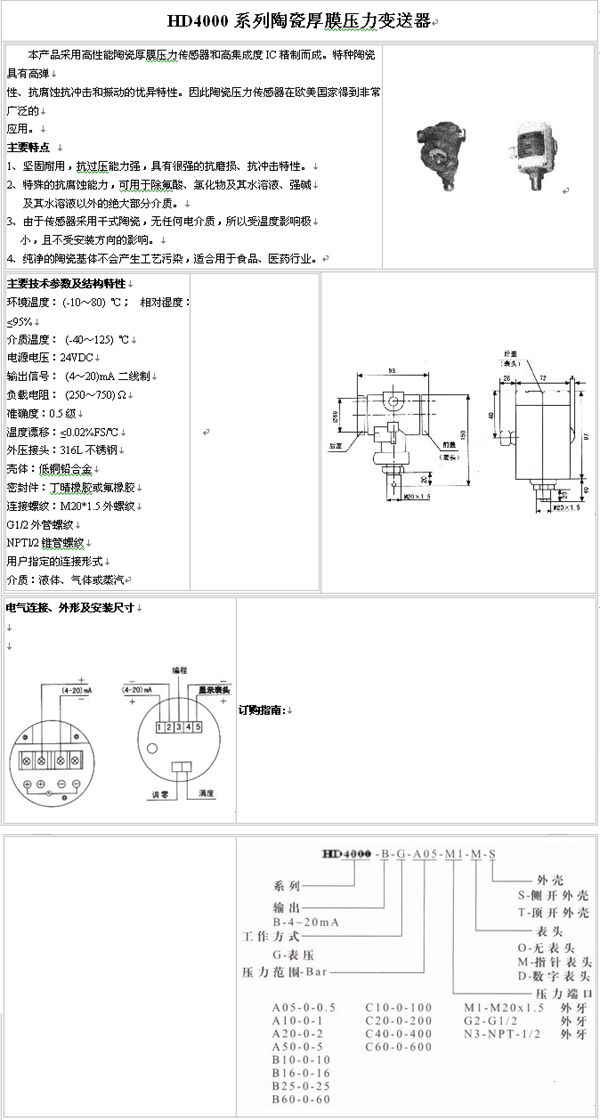 產(chǎn)品名稱:HD4000系列 陶瓷厚膜壓力變送器(pressure sensor) |